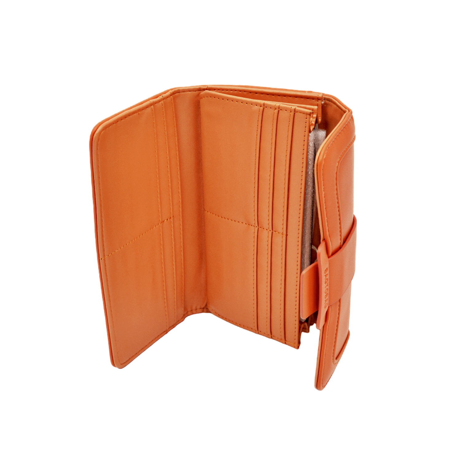 Κομψό γυναικείο πορτοφόλι από υψηλής ποιότητας δερματίνη σε πορτοκαλί απόχρωση, με μαγνητικό κούμπωμα, καθώς και πολλές εσωτερικές θήκες, ώστε να μπορεί να καλύψει κάθε σας ανάγκη.